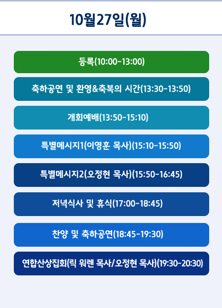 (10월 27일(월) 10:00 현장 명찰배부 시작, 10월 28일(화) 18:00 행사종료 예정)