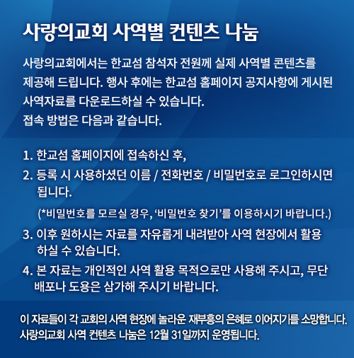 1. 참석자 전원에게 사랑의교회 실제 사역별 컨텐츠(파일 등) 제공