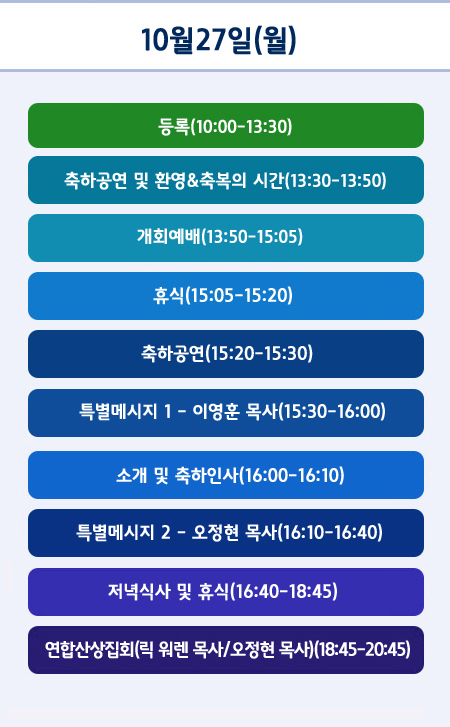 (10월 27일(월) 10:00 현장 명찰배부 시작, 10월 28일(화) 18:00 행사종료 예정)